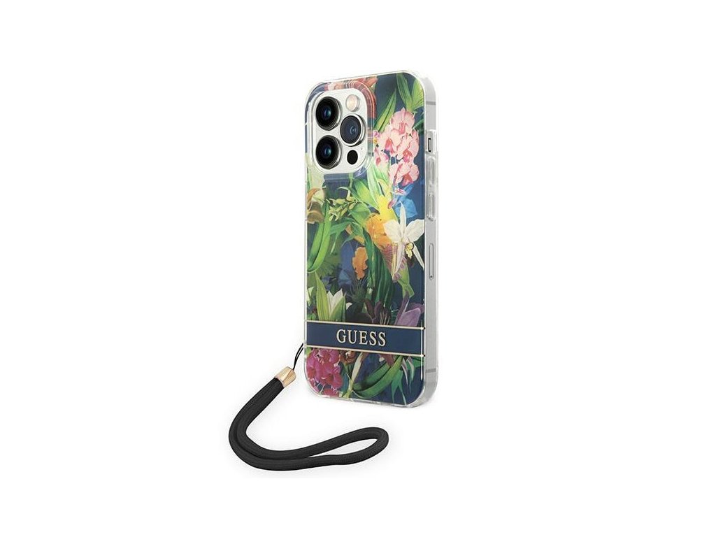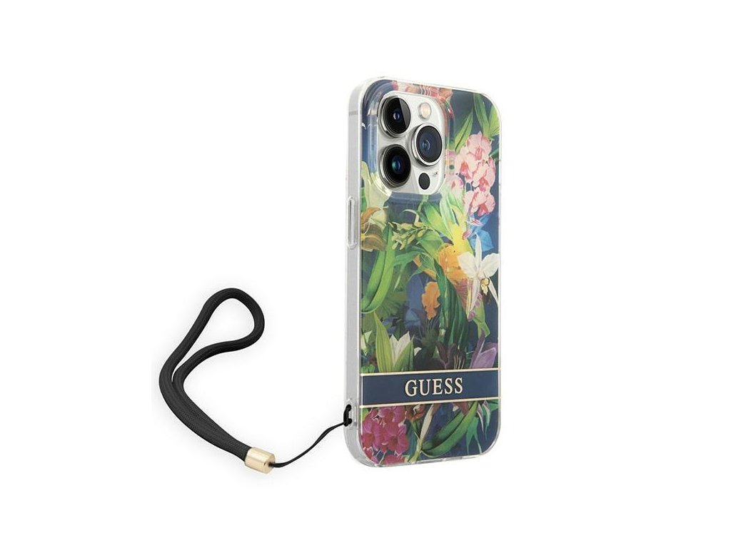 Pouzdro GUESS pro iPhone 14 Pro modrý pevný kryt s květinovým řemínkem Nové