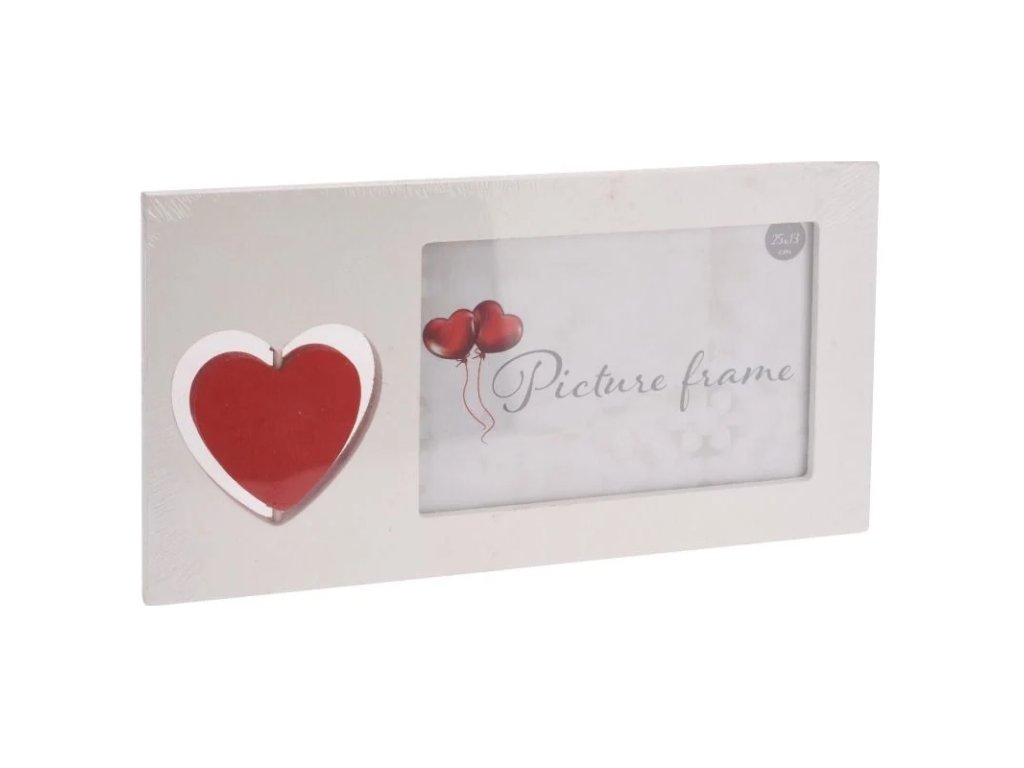 Skvělý dárek na Svatého Valentýna! Bílý fotorámeček ze dřeva se srdcem v červené barvě o rozměrech 13x25 cm je stylovým a romantickým doplňkem pro váš interiér. Tento rámeček je navržen tak, aby zvýraznil vaše oblíbené fotografie a zároveň přidal do prostoru nádech lásky a osobního stylu.