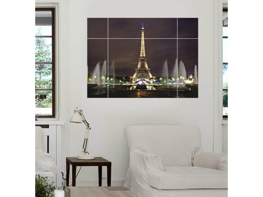 3D samolepka na zeď - Rozsvícená Eiffelova věž Nové