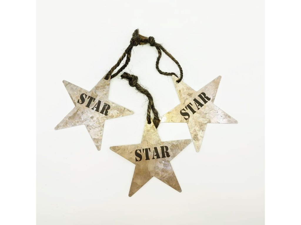 3 ks vánoční závěsná dekorace - plechová hvězda 10 cm s nápisem Star.