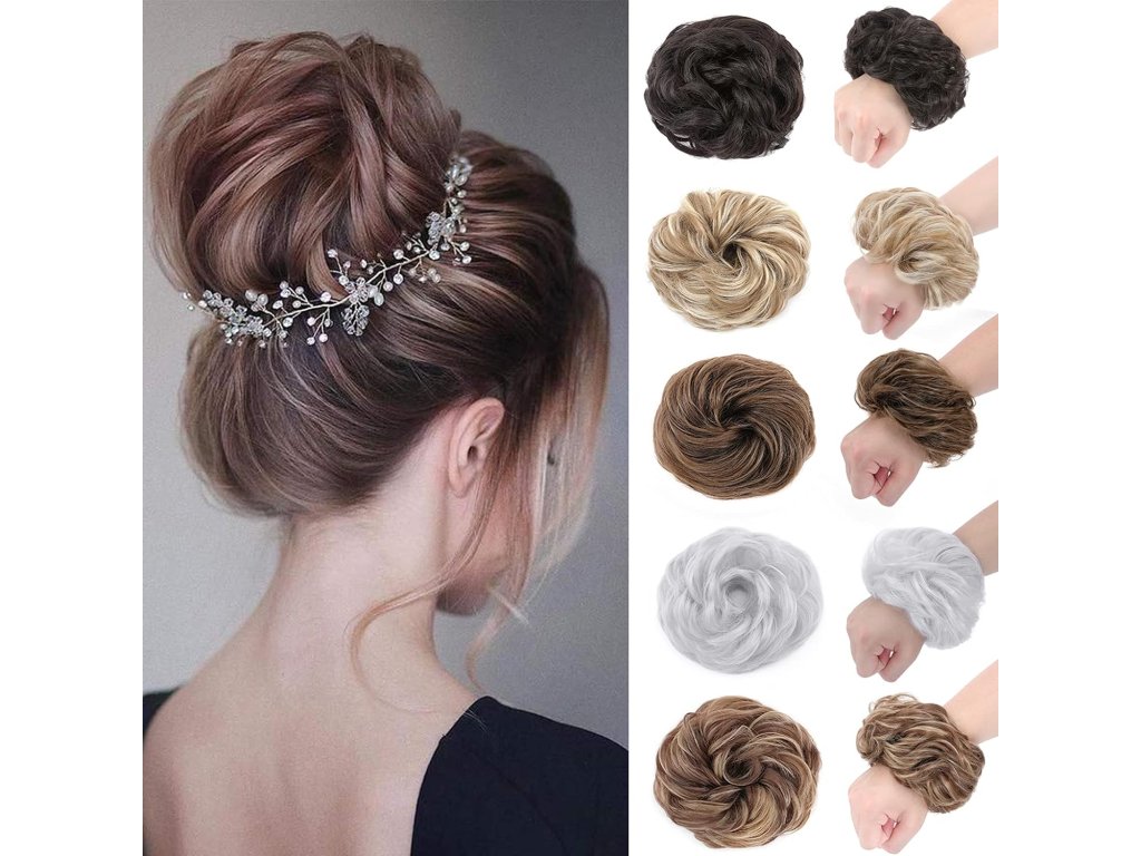 Snadné použití: chaotický vlnitý drdol scrunchie syntetické vlasy, ideální pro přidání objemu a plnosti do drdolu nebo culíku, velmi pohodlné a snadné použití, elegantní a krásné;Doplňkové parametry