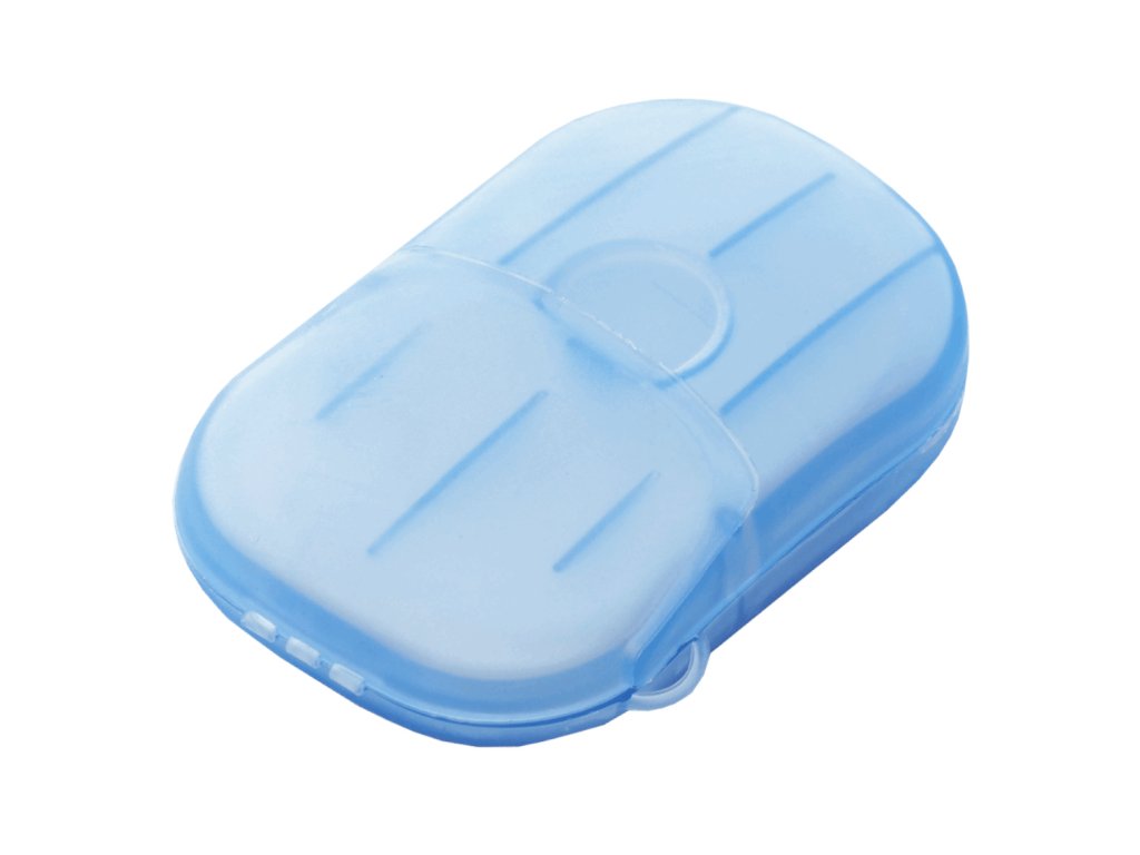 Mýdlo v prostěradlech, 40 ks, modré pouzdro, po vložení do ruky zalít teplou vodou a napěnit, 4,5x7 cm