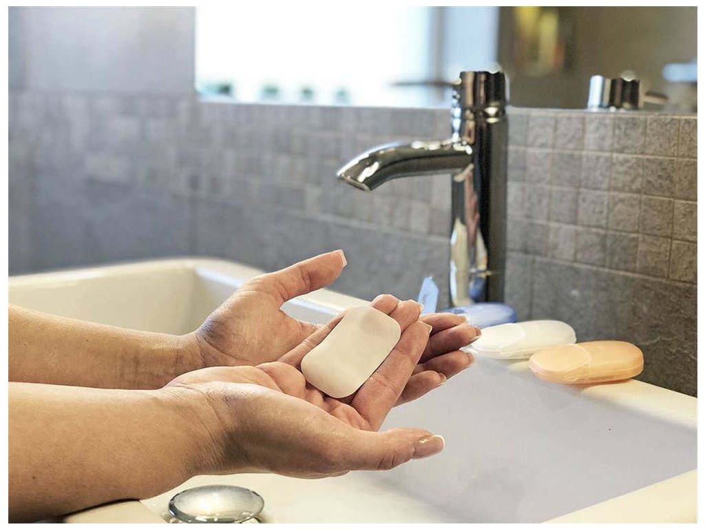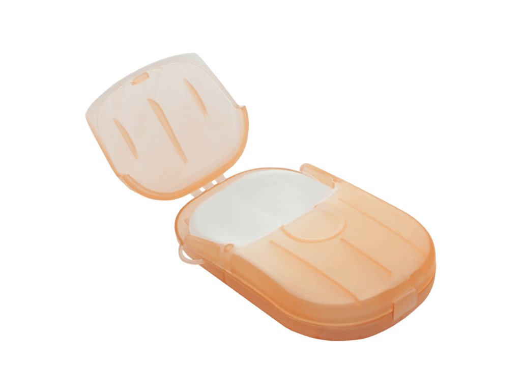 Mýdlo v prostěradlech, 40 ks, oranžové pouzdro, po vložení do ruky zalít teplou vodou a napěnit, 4,5x7 cm