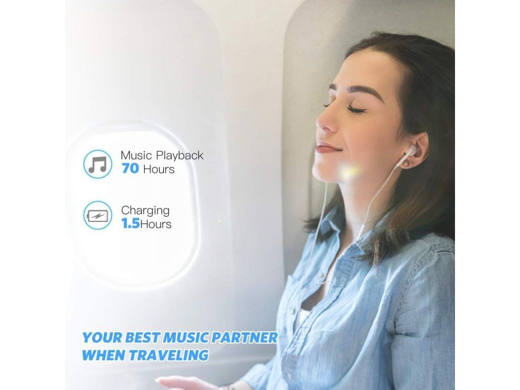 - Dlouhá výdrž: Vestavěná Li‑Pol baterie 420 mAh poskytuje až 70 hodin přehrávání; rychlé nabití přes USB přibližně za 1,5 hodiny.
