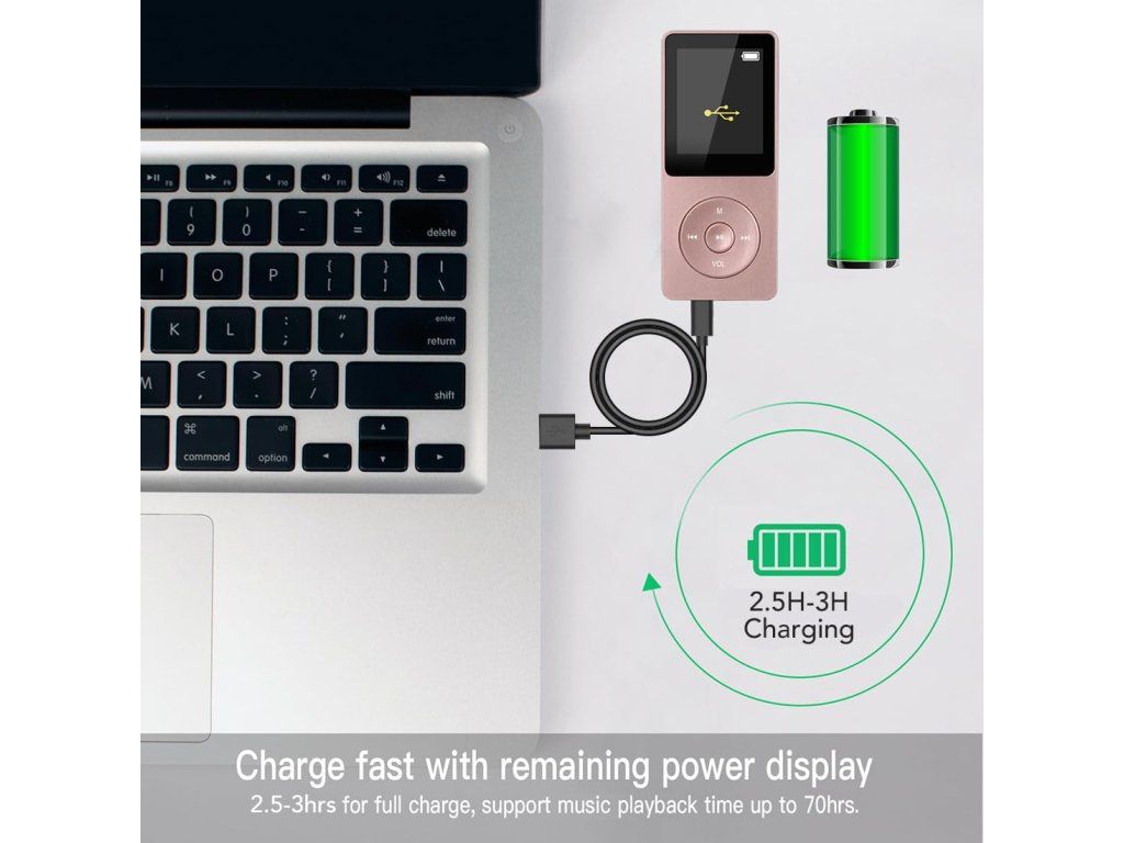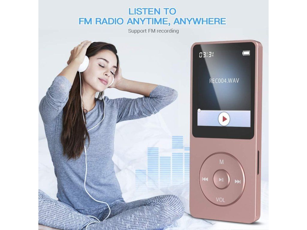 Kapesní MP3 přehrávač 8 GB, až 70 h přehrávání, růžově zlatý Nové