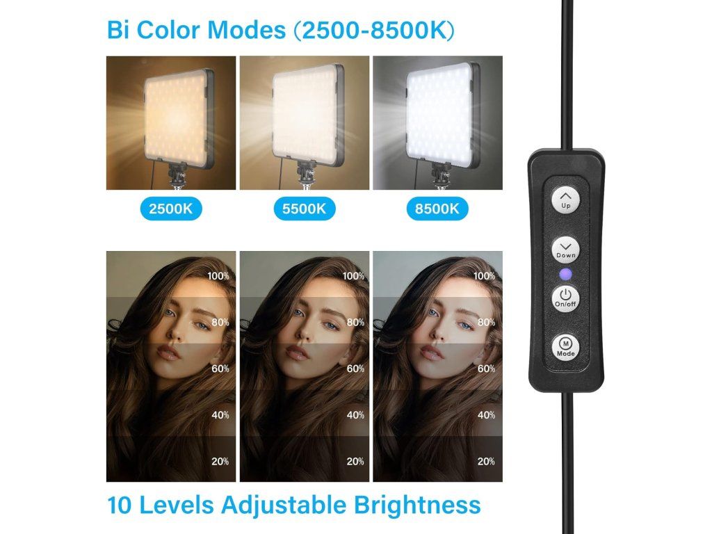 Výkonný a přenosný set dvou LED světelných panelů, navržený pro natáčení videí, livestreaming, podcasty i portrétní fotografii. Nabízí široký rozsah barevné teploty a plynulé nastavení jasu pro profesionální a přitom měkké osvětlení.