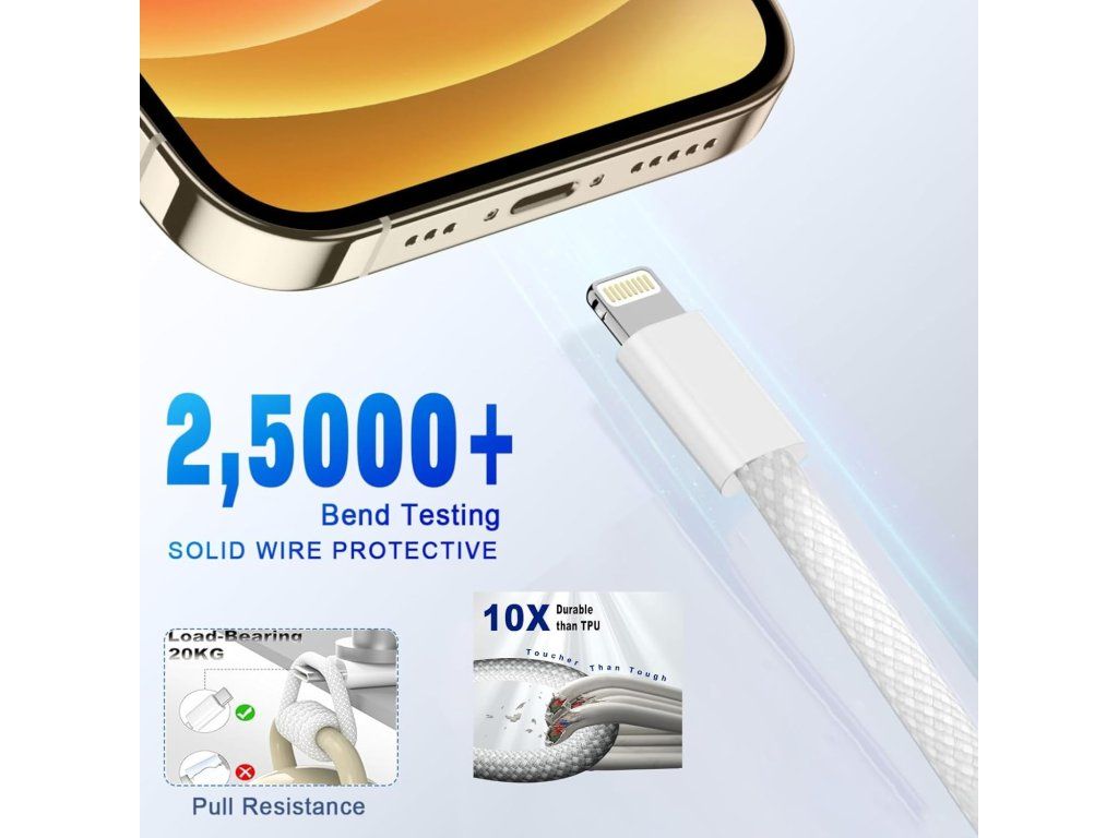 - Odolné provedení: Nylonové opletení a konstrukce testovaná na více než 25 000 ohybů pro dlouhou životnost a odolnost proti zamotání.
