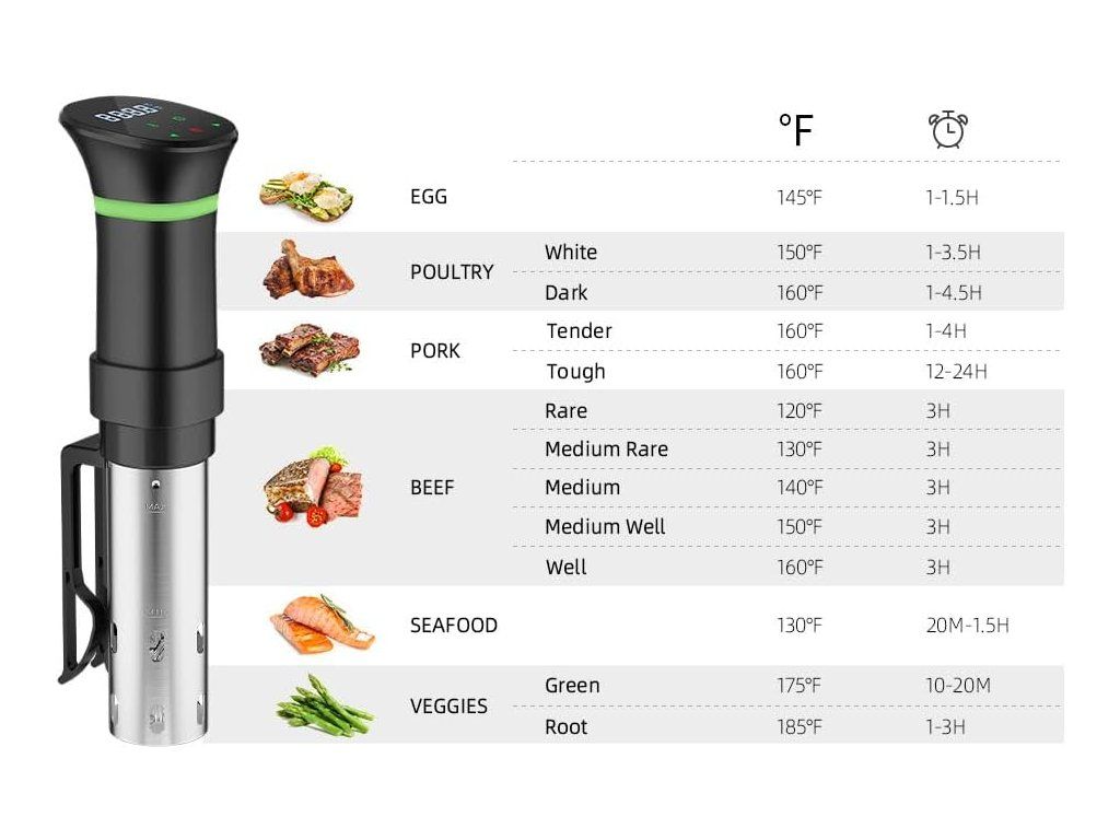 - Výkon a rozsah: Výkon 1000 W, široký teplotní rozsah 25–92,5 °C (77–198,5 °F) a max. nastavitelný časovač až 99 hodin.