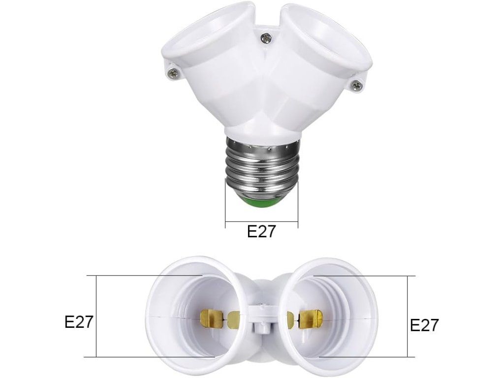 Praktický adaptér, který promění jednu objímku E27 na dvě standardní patice E27, a tím umožní rychlé zvýšení intenzity osvětlení bez nutnosti úprav elektroinstalace.