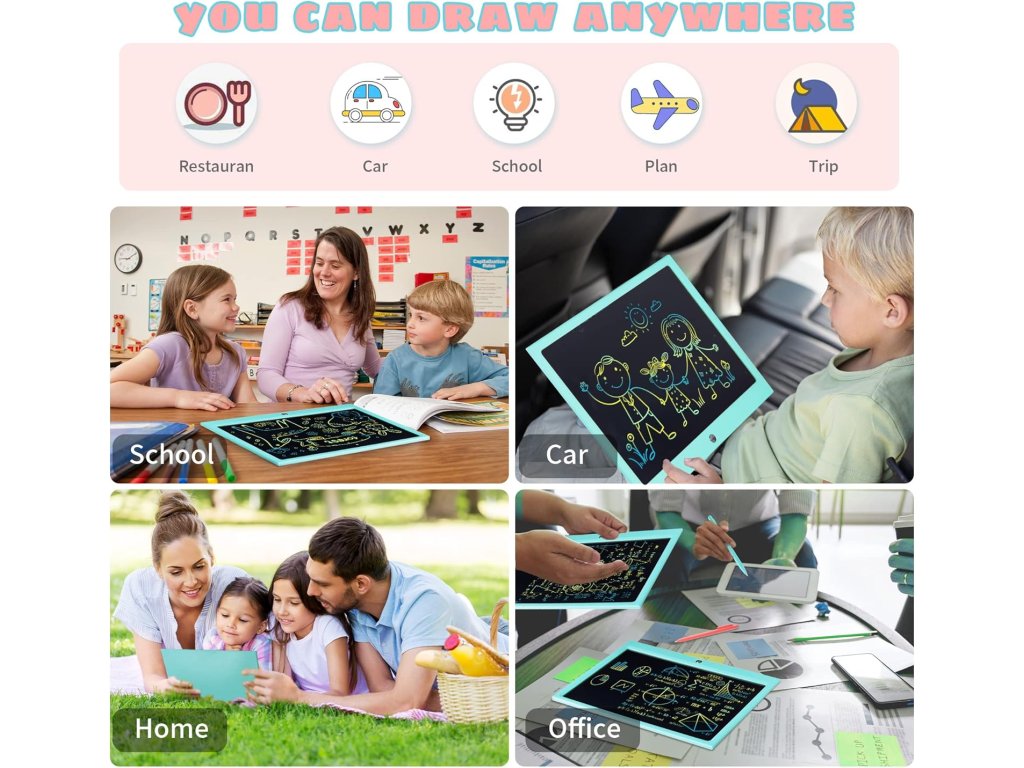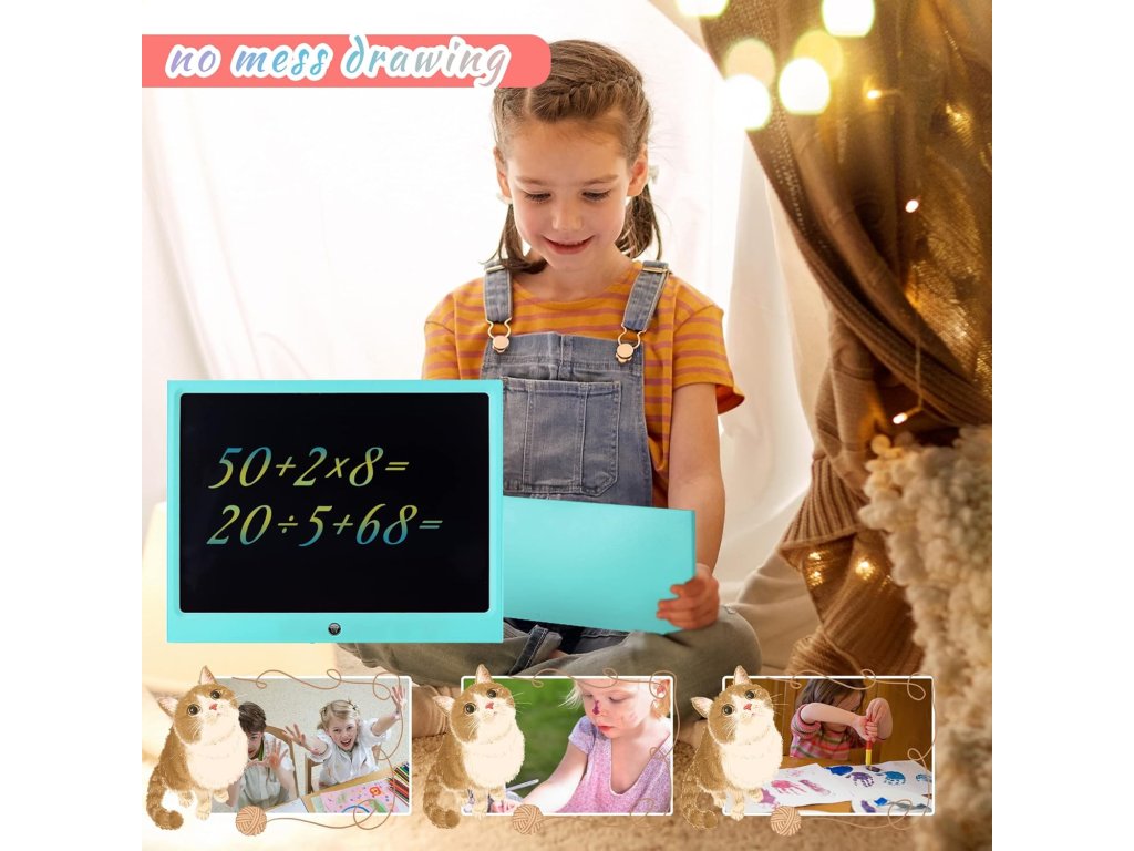 Barevný 15palcový LCD psací tablet nabízí bezpečnou a zábavnou plochu pro kreslení, psaní a učení bez papíru. Díky tlakově citlivému displeji a ochraně zraku poskytuje živé barvy a pohodlné používání i při delším hraní.