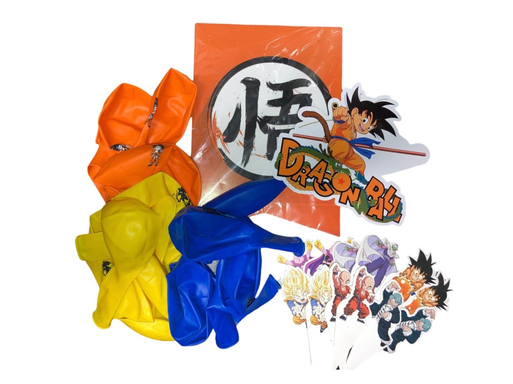Party set with SEVEN DRAGON BALL motif. Set includes 1x garland, 1x cake topper, 12x cupcake toppers, 18x balloonAdditional parameters