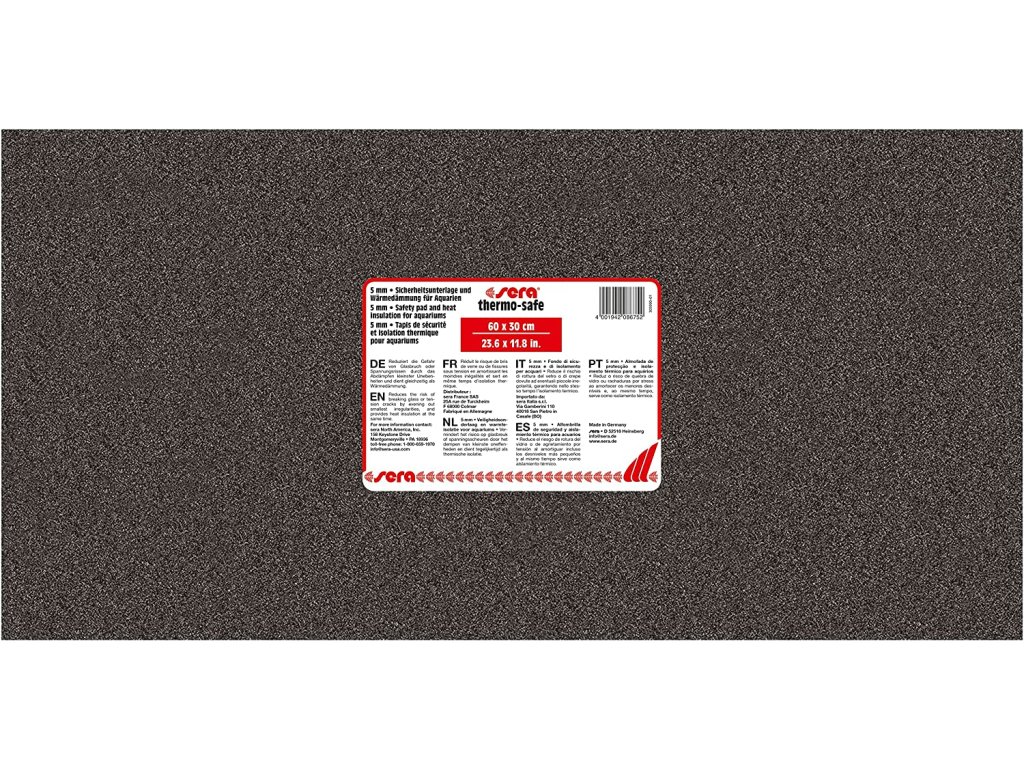 Reduces the risk of glass breakage caused by even a single grain of sand The Sera thermo-safe 60 x 30 cm multifunctional mat is made with an emphasis on quality and functionality. It offers excellent value for money, reliability and long-term durability. The ideal choice for those looking for a practical and effective solution for their needs. A great investment in quality.Additional parameters