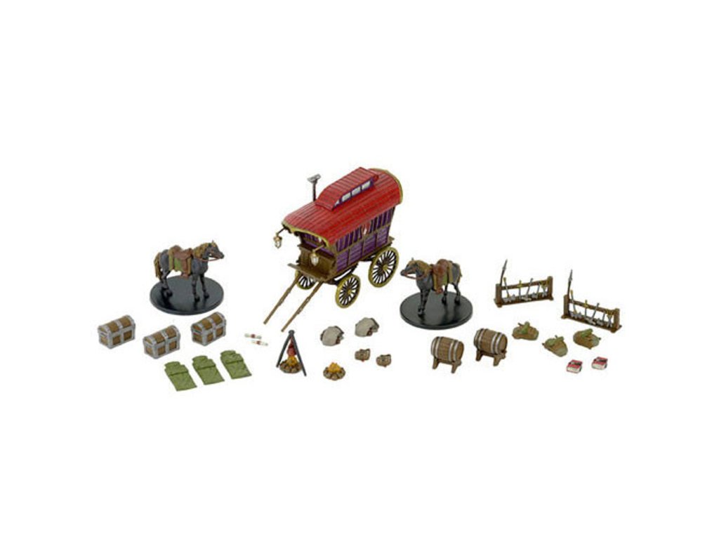 Tato pobídková sada obsahuje následující položky: Ezmereldin vůz, 2 táboráky, 3 truhly s pokladem, 2 sudy, 2 hromady pytlů, 2 koně se svitky, 2 pytle s nářadím - hrnec na vaření.