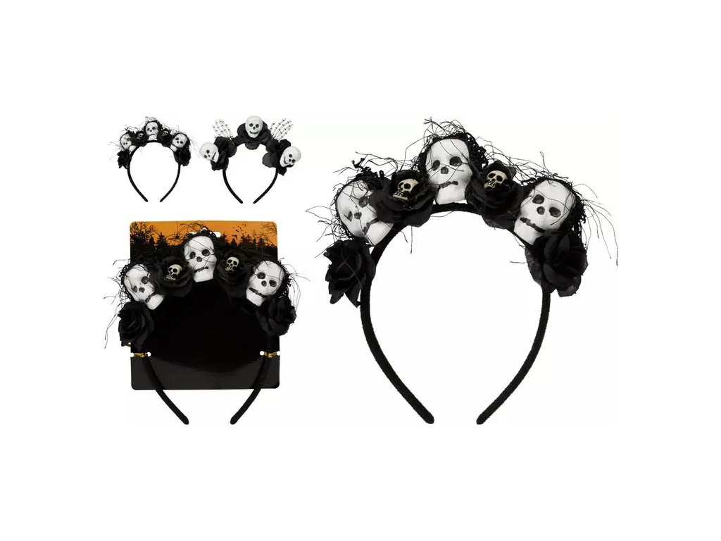 Halloweenská čelenka s dekoracemi lebek Nové, mix druhů