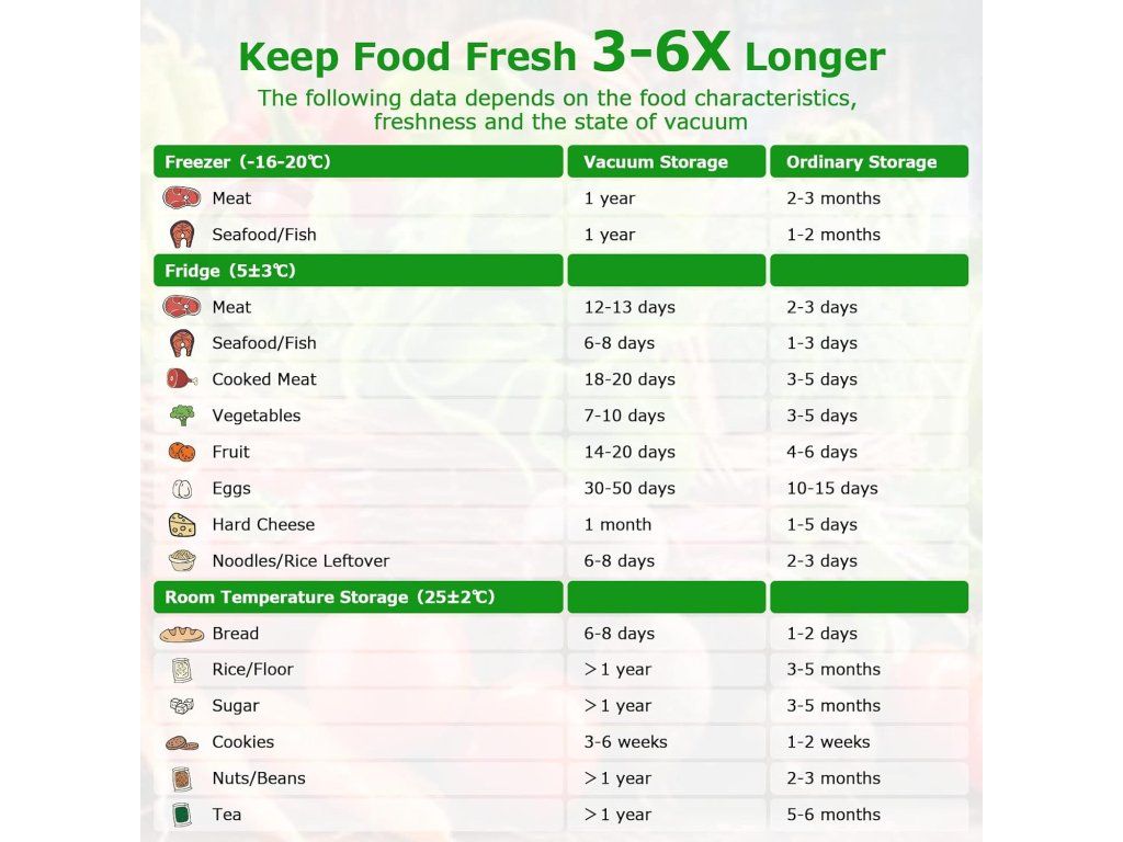 - Široká kompatibilita: funguje s většinou vakuovacích strojů a je vhodné pro použití v mrazáku, lednici, mikrovlnné troubě a při vaření sous‑vide.