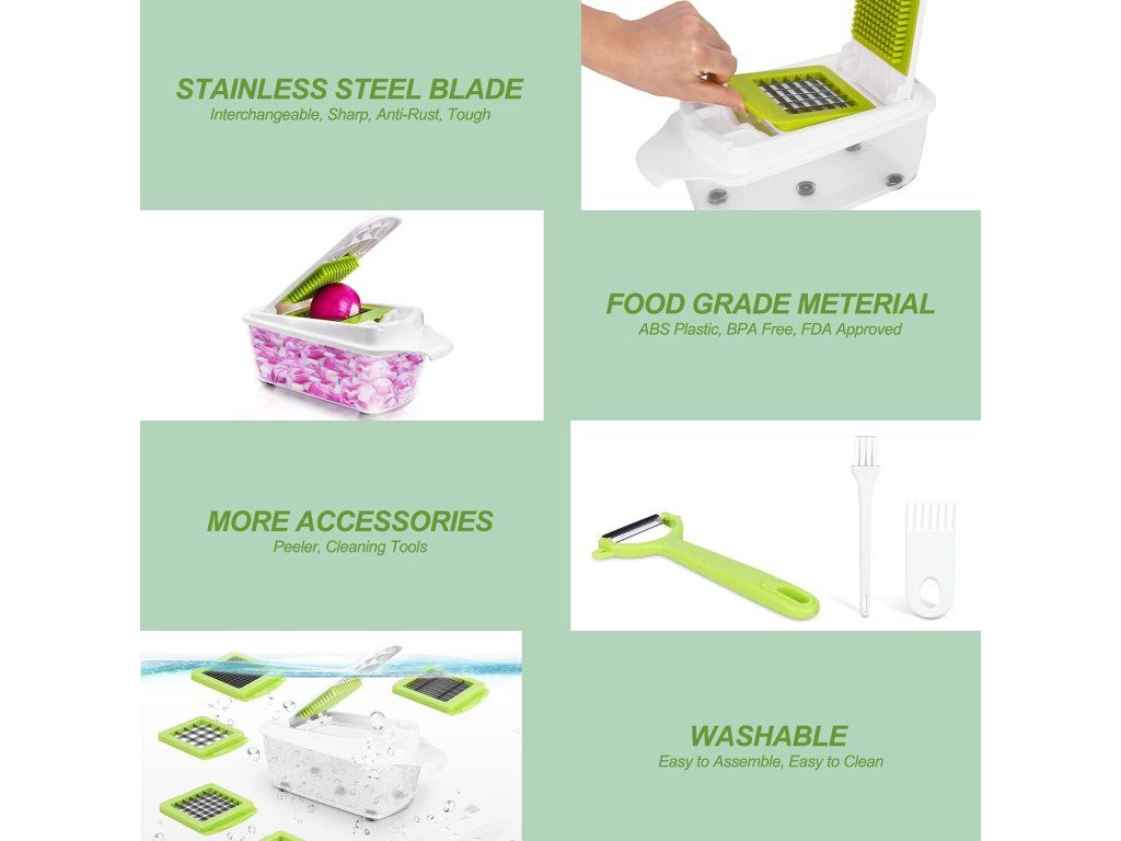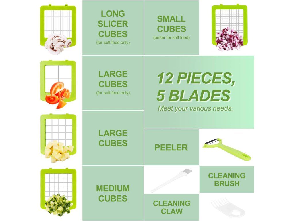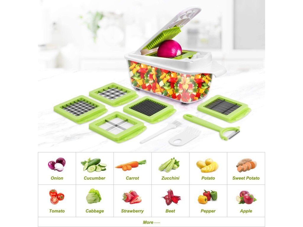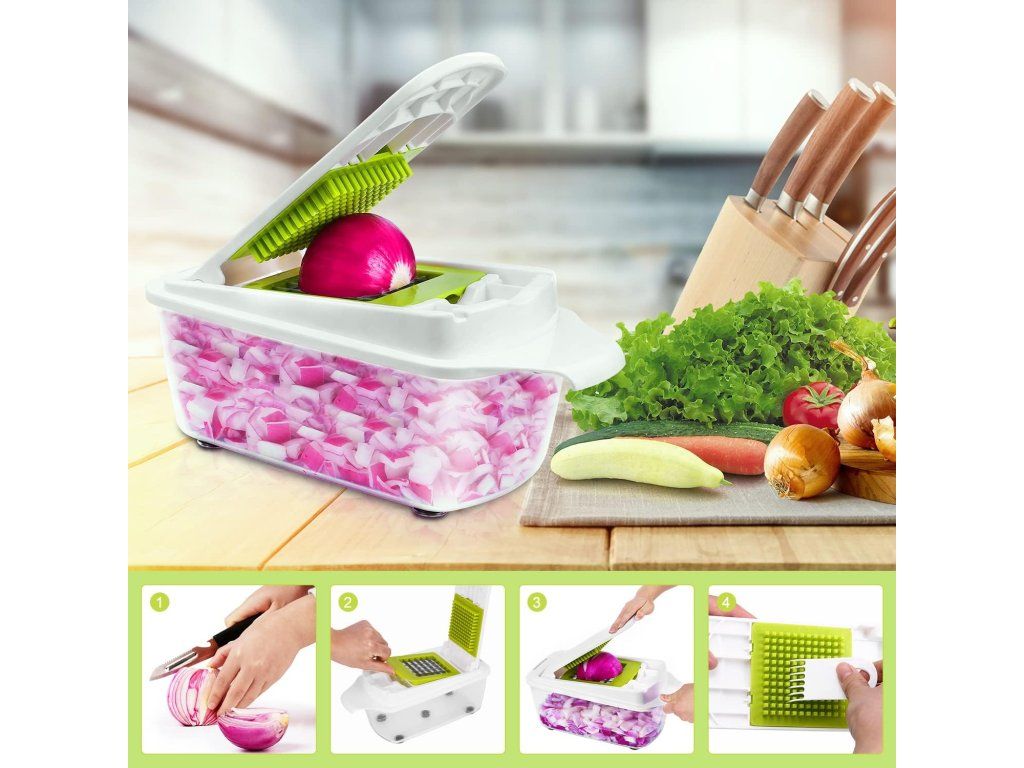 Sekáček na zeleninu s 5 vyměnitelnými čepelemi Nové