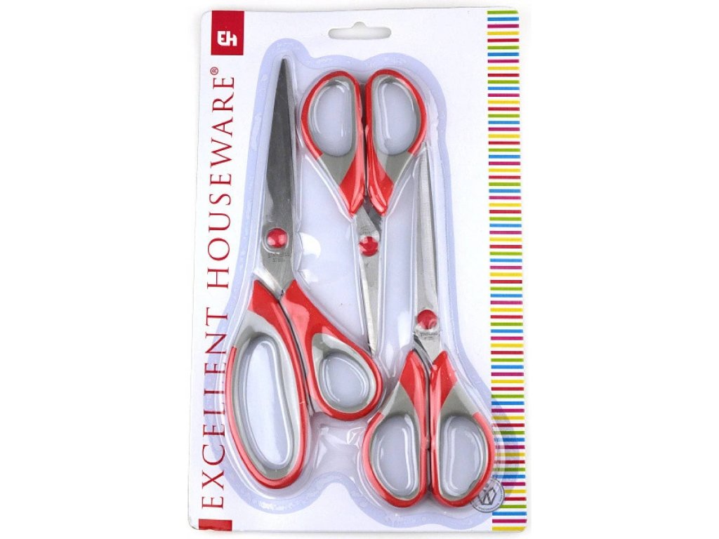 Obsah balení: nůžky 21,5 cm nůžky 17cm nůžky 14 cm Produkt Sada nůžek 3 ks je vyroben s důrazem na kvalitu a funkčnost. Nabízí vynikající poměr ceny a kvality, spolehlivost a dlouhodobou životnost.Doplňkové parametry