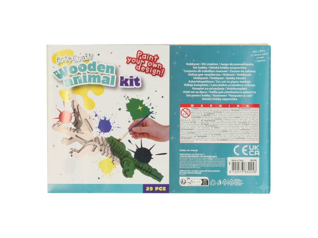 Sada obsahuje vše, co potřebujete: 58 dílků, 6 barevných barev, štětec, brusný papír a návod. Vzory motýla, krokodýla a plameňáka. Produkt Dětská dřevěná skládanka s temperami je vyroben s důrazem na kvalitu a funkčnost. Nabízí vynikající poměr ceny a kvality, spolehlivost a dlouhodobou životnost.Doplňkové parametry