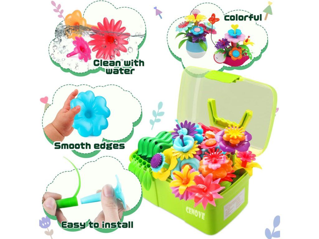 Vytvořte s dětmi vlastní květinovou zahrádku a kytice! Tato kreativní stavebnice nabízí pesné barvy a variabilní díly, které podporují tvořivost, prostorové myšlení a jemnou motoriku při zábavné hře a společném tvoření.