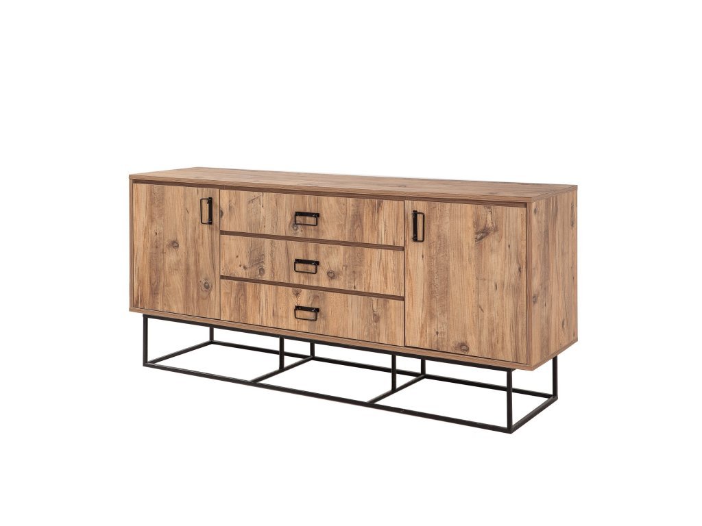 Komoda QUANTUM VERDA vás okouzlí svým jednoduchým a přitom krásným vzhledem, ve kterém dominuje dekor světlého dřeva doplněn o kovové prvky. Kromě jedinečného vzhledu má komoda i praktický úložný prostor. Do tří zásuvek a čtyř polic můžete tak uložit oblečení, lůžkoviny, dokumenty či učebnice. Rozjasněte svůj interiér moderním a vkusným kouskem. Umístění je jen na Vás Bude to předsíň, ložnice či obývací pokoj? Vlastnosti: materiál: 18 mm silná dřevotříska potažená melaminem, kov 1,5 cm silný kovový rám rozměry: šířka - 180 cm, výška - 80 cm, hloubka - 45 cm výška kovové podstavy: 22 cm teleskopický výsuv zásuvek kovové úchyty 3 zásuvky - výška 16 cm, šířka 85 cm 4 uzavřené police - výška 26 cm, šířka - 45 cm