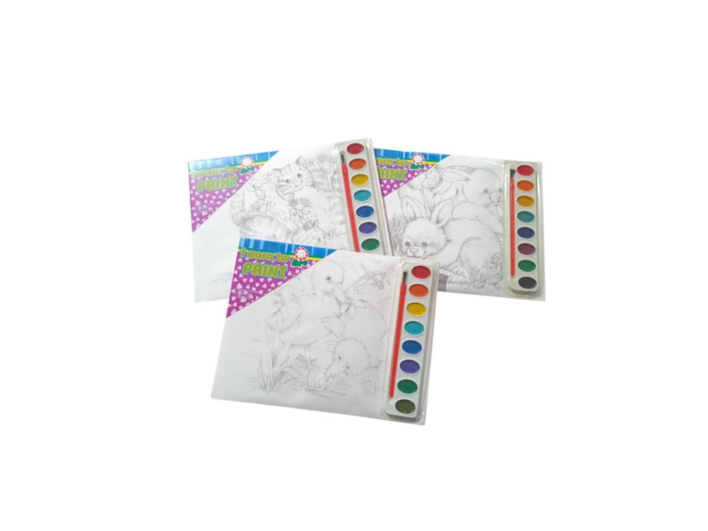 V balení najdete 4 obrázky k vybarvení, štětec a 8 barviček.